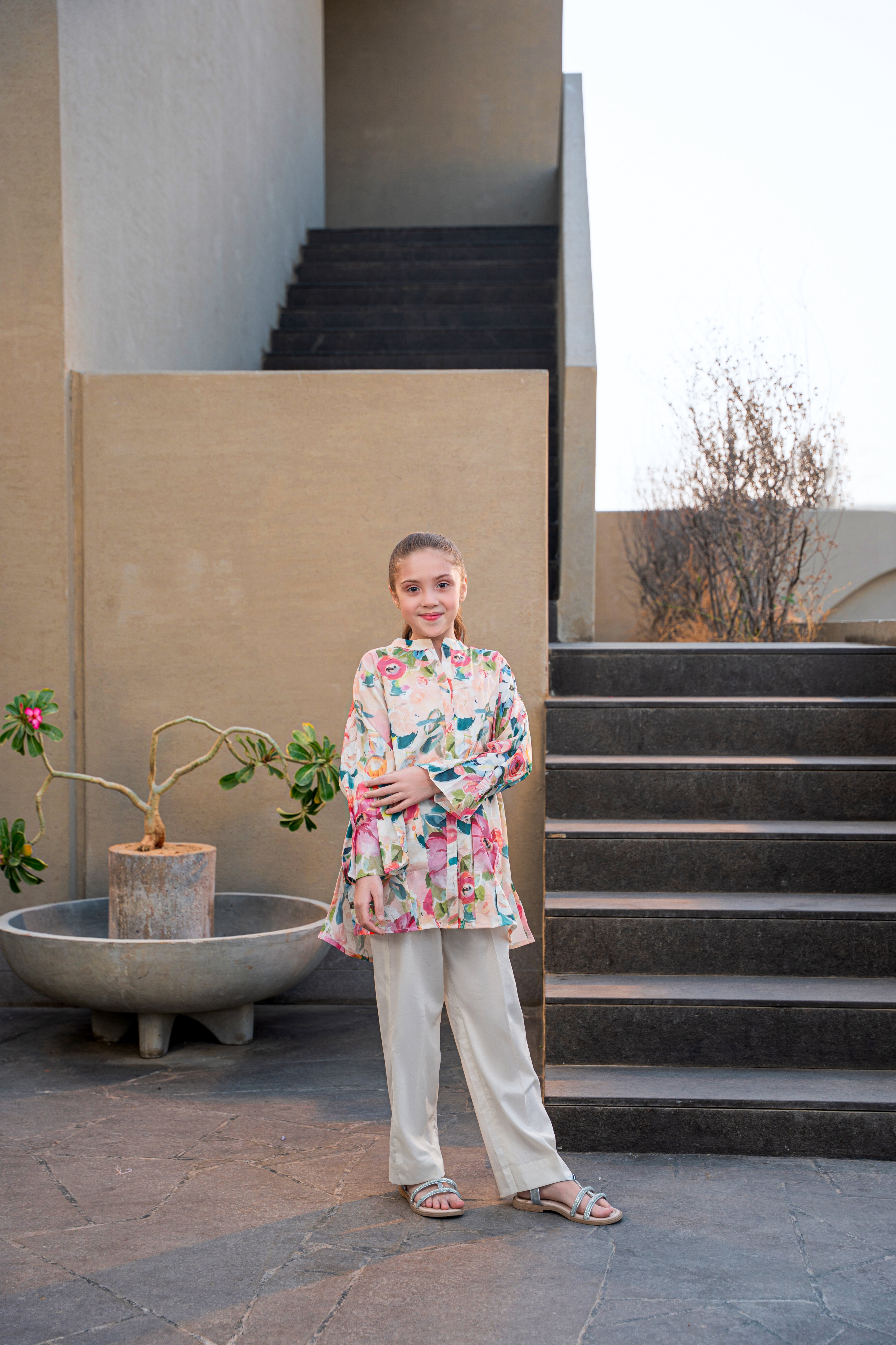 - A SMART FLORAL PRINTED SHIRT, FEAUTURING A PLEATED SLLEVES AND FRONT WITH NEAT COLLAR AND OPEN PLACKED.